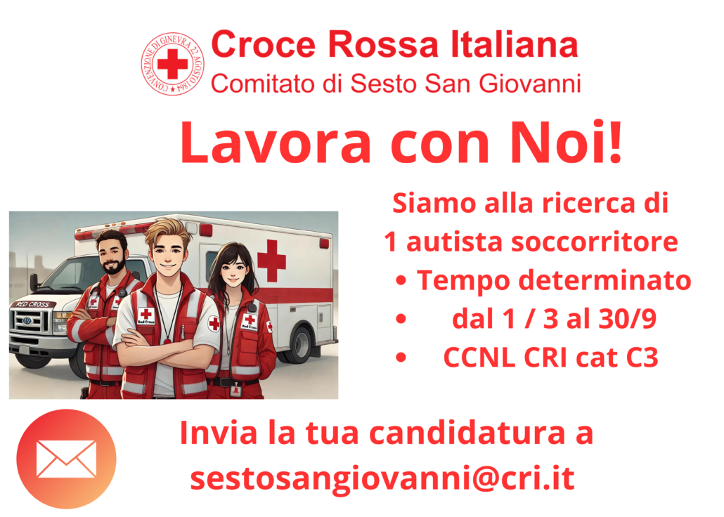 Le candidature dovranno pervenire entro e non oltre domenica 22 febbraio 2026 ore 12:00 esclusivamente inviando alla mail sestosangiovanni@cri.it il proprio curriculum ed eventuali certificati utili in proprio possesso.